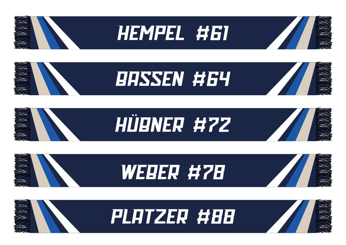 Hol dir Deinen Liebslingsspieler als Schal mit unseren Trikotschals 25I26 passend zum Heimtrikot mit den Spielernamen und Nummern.