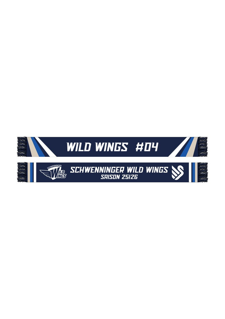 Auf der Vorderseite Spielername und Nummer, die Rückseite ist einheitlich mit SCHWENNINGER WILD WINGS SAISON 25I26.